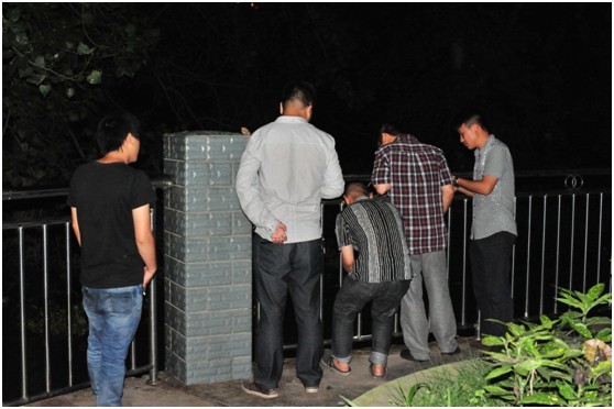 圖為值班人員正在勘查水位