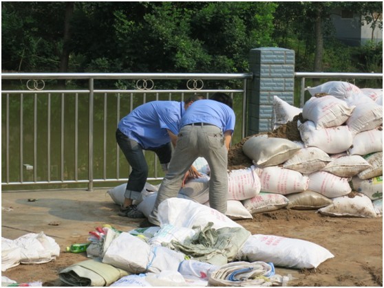 7月11日晚12時(shí)開始,內(nèi)江地區(qū)開始普降大雨,防汛形式嚴(yán)峻,總經(jīng)理王秋虎到配氣站視察水位并做出重要指示,以最快的速度增加配氣站防汛設(shè)施確保場(chǎng)站內(nèi)安全。7月12日早上2時(shí)開始,雨勢(shì)逐漸減弱,配氣站防汛小組值班人員每三十分鐘進(jìn)行一次水位勘察,水位上漲速度緩慢,至12日上午11時(shí),水位距堡坎保持在0.50米左右。同時(shí)公司于12日上午增置2000只沙包,進(jìn)一步確保配氣站內(nèi)安全。截止12日下午6時(shí)水位距堡坎保持在0.50米位置。