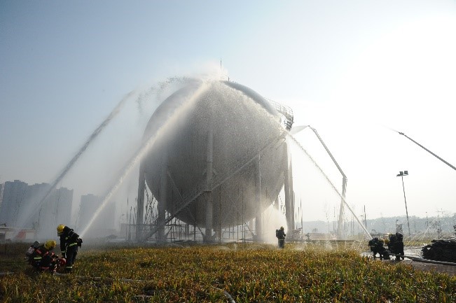 隨后公司應急隊伍到達現(xiàn)場處置,在接到自貢采氣作業(yè)區(qū)控制氣源后,啟動倒罐作,期間市消防隊趕到現(xiàn)場對儲罐進行噴淋稀釋燃氣,待球罐壓力降至0MPa,搶險隊進入現(xiàn)場,更換完泄漏法蘭墊片。請求開始恢復供氣作業(yè),執(zhí)行升壓操作,隨時進行泄漏檢測,檢測無泄漏后,聯(lián)系自貢采氣作業(yè)區(qū)恢復正常供氣。