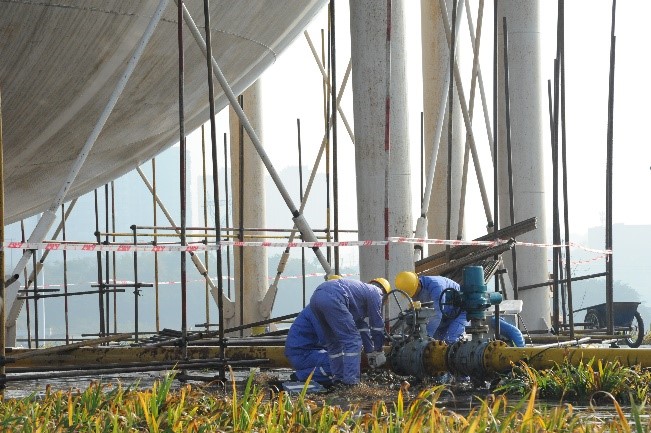 上午10時,城西天然氣儲配站員工日常巡檢時,當巡至5000m3球罐附近聽到有燃氣泄漏聲音,初步判斷是球罐底部進氣閥門法蘭連接處泄漏。進一步查看發(fā)現(xiàn)泄漏量較大,已處于失控狀態(tài),如果不能及時處置,可能引起著火爆炸等嚴重后果,對周邊地區(qū)造成威脅,并影響內(nèi)江市主城區(qū)近20多萬用戶正常用氣。當班人員無法完成處置,立即報告公司調(diào)度中心,公司總經(jīng)理舒忐下令隨即啟動《燃氣泄漏事故應急救援預案》進行處置,通知市消防支隊救援,并協(xié)調(diào)中石油蜀南氣礦自貢采氣作業(yè)區(qū)控制氣源。