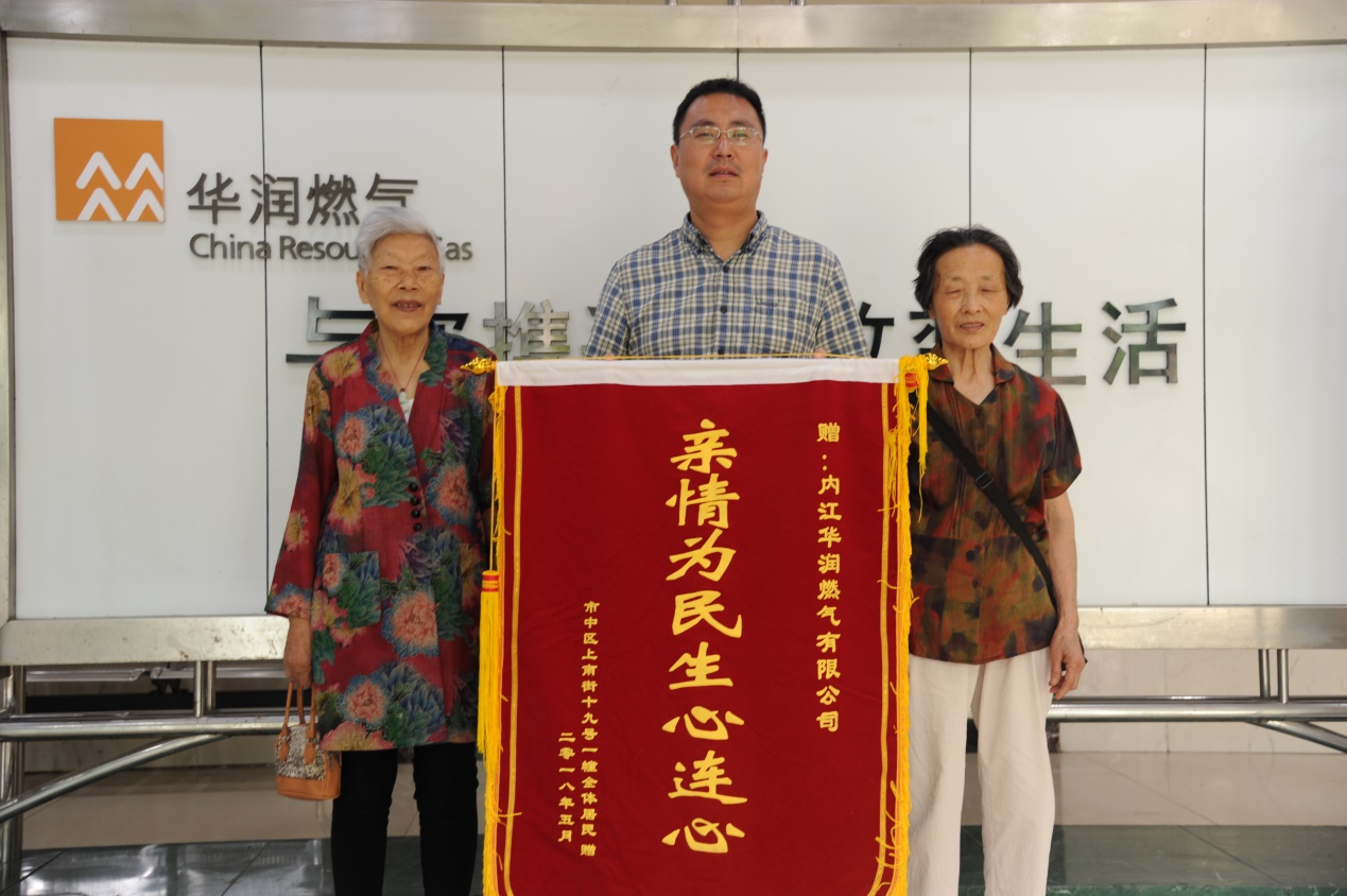 近日,內(nèi)江華潤燃?xì)庥邢薰居瓉砹藥孜话装l(fā)蒼蒼的老人,他們是上南街202號(hào)的住戶,專程為內(nèi)江華潤燃?xì)庥邢薰舅蛠砹祟}為“親情為民生心連心”的錦旗,感謝公司在總表改造工作中的惠民服務(wù)。
