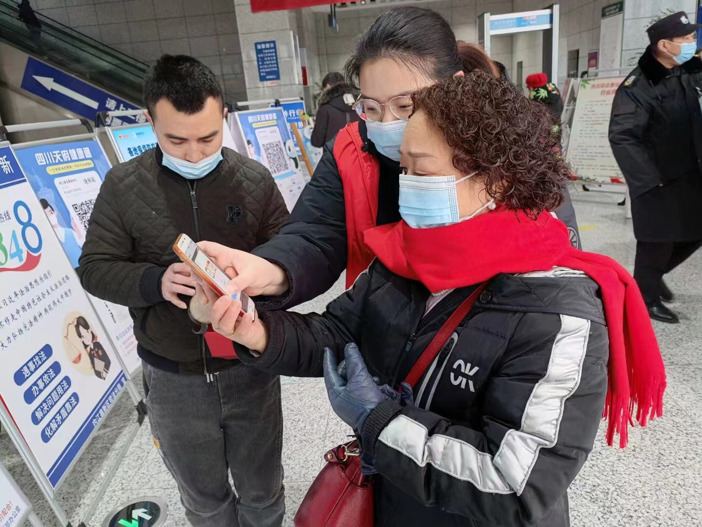 春運(yùn)返程是疫情防控的重要時(shí)期,客運(yùn)中心人流量大、易擁堵,有許多旅客因?yàn)椴皇煜ぁ】荡a’的操作方法,卡在了檢票口無(wú)法進(jìn)站,志愿?jìng)兎止ず献?、耐心引?dǎo)旅客掃場(chǎng)所碼、測(cè)溫、安檢、購(gòu)票,提醒旅客正確佩戴口罩等服務(wù),維護(hù)站內(nèi)環(huán)境衛(wèi)生和秩序,堅(jiān)決守好疫情防控的第一道關(guān)卡,使乘客更加便捷、安全回家。