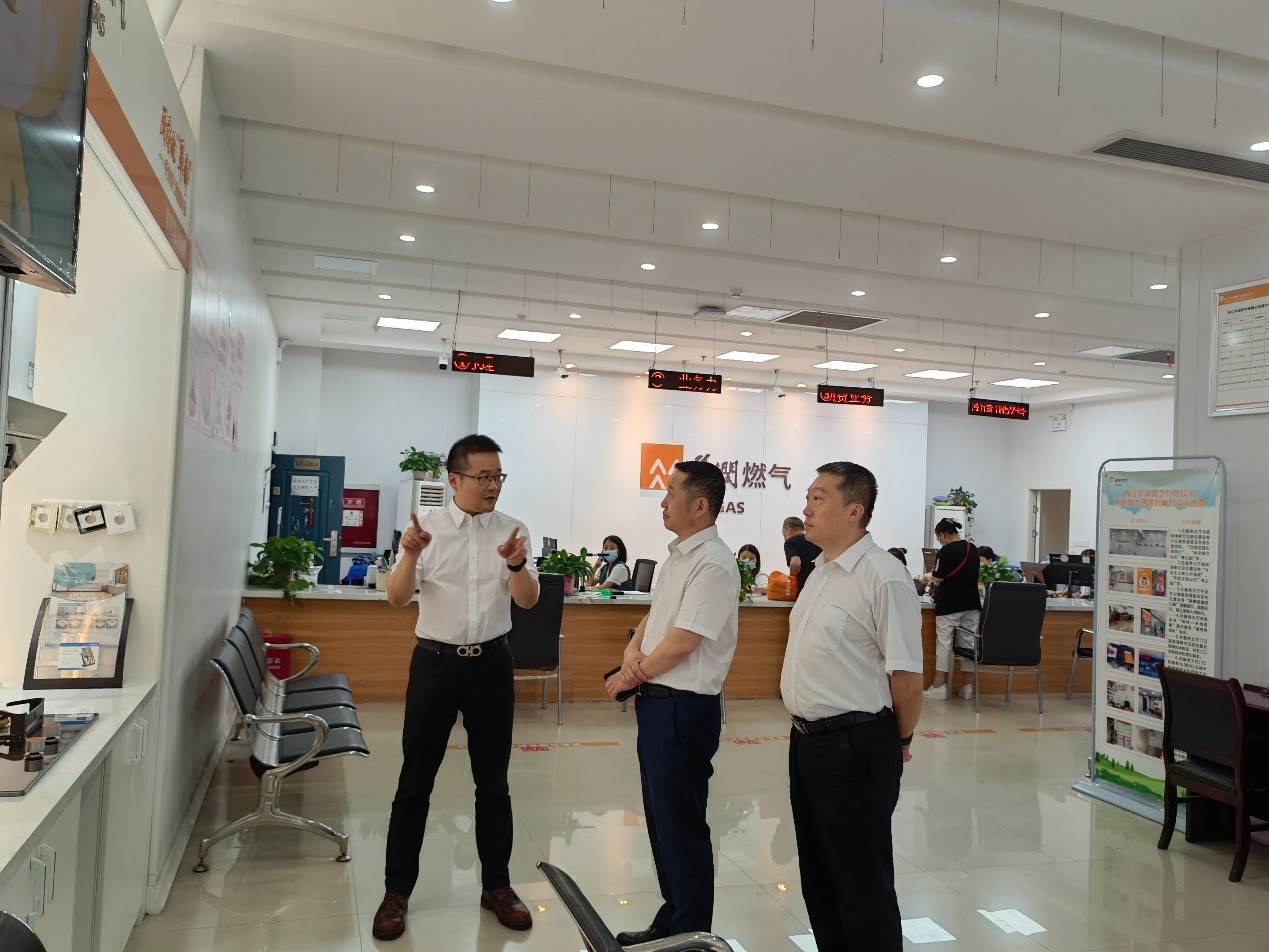 陳建軍副市長實地察看了內(nèi)江華潤燃?xì)馓茁房蛻舴?wù)大廳,詳細(xì)詢問客戶柜臺辦理業(yè)務(wù)、戶內(nèi)燃?xì)庠O(shè)施改造、客戶端安全隱患治理、助企紓困、便民舉措等情況,并同服務(wù)大廳工作人員及客戶交流詢問有關(guān)業(yè)務(wù)辦理、燃?xì)馕⒕W(wǎng)廳運行、用戶安全意識提升等情況。在隨后的座談會上,陳建軍副市長聽取了內(nèi)江華潤燃?xì)獾墓ぷ鲄R報,了解了企業(yè)生產(chǎn)經(jīng)營、氣源管網(wǎng)建設(shè)、安全隱患治理、老舊管網(wǎng)改造計劃、當(dāng)前國際氣價變動影響等情況,以及當(dāng)前經(jīng)營中遇到的困難。