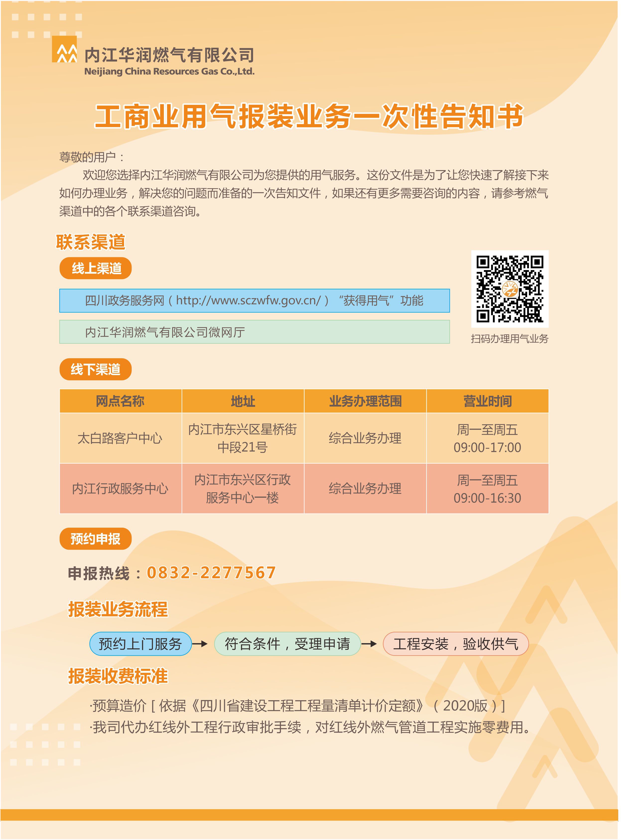 工商業(yè)用氣報裝業(yè)務(wù)一次性告知書