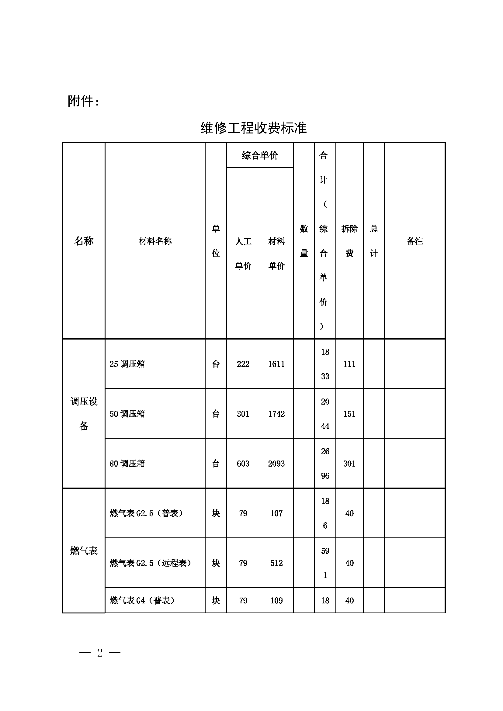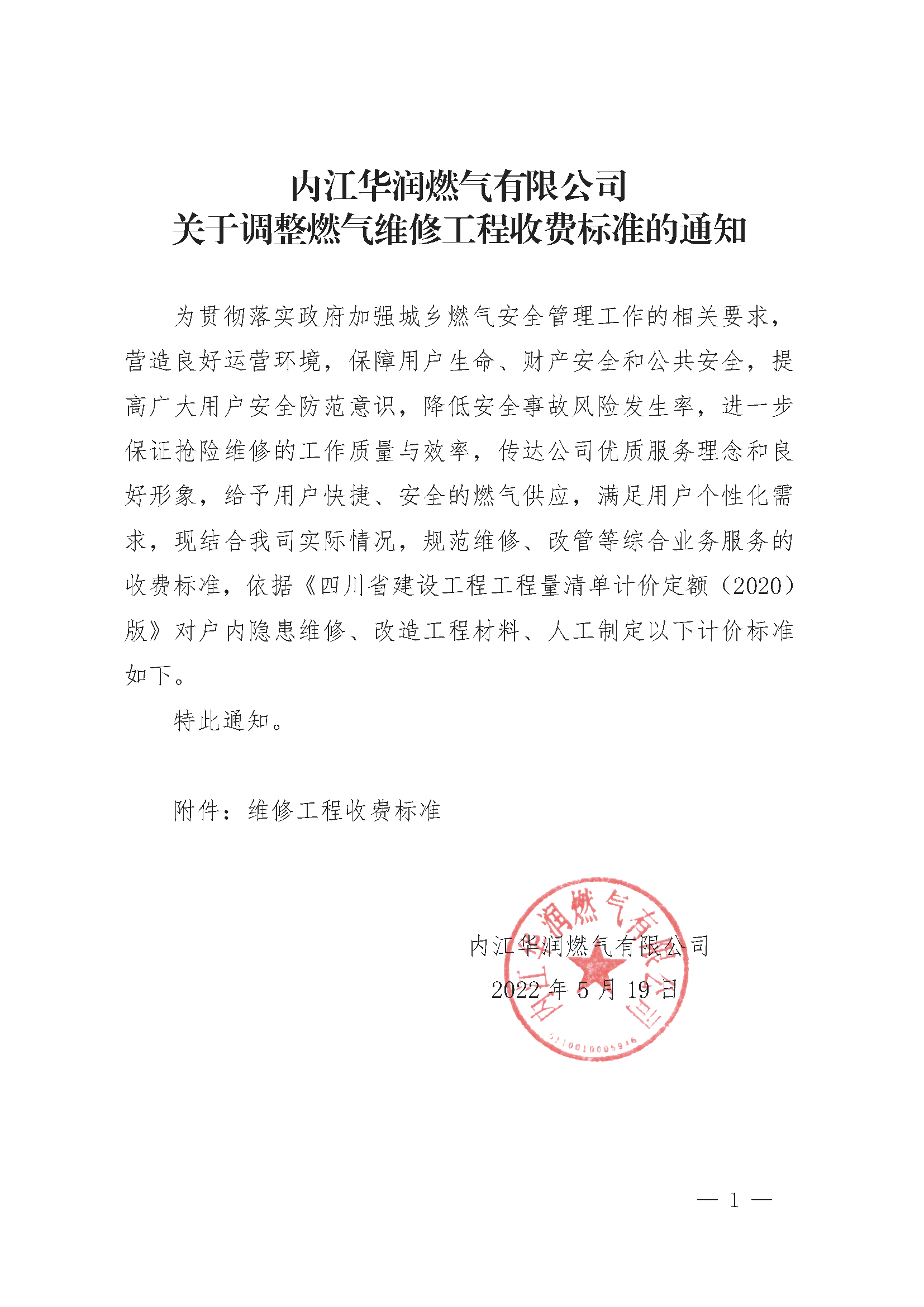 關于調整燃氣維修工程收費標準的通知